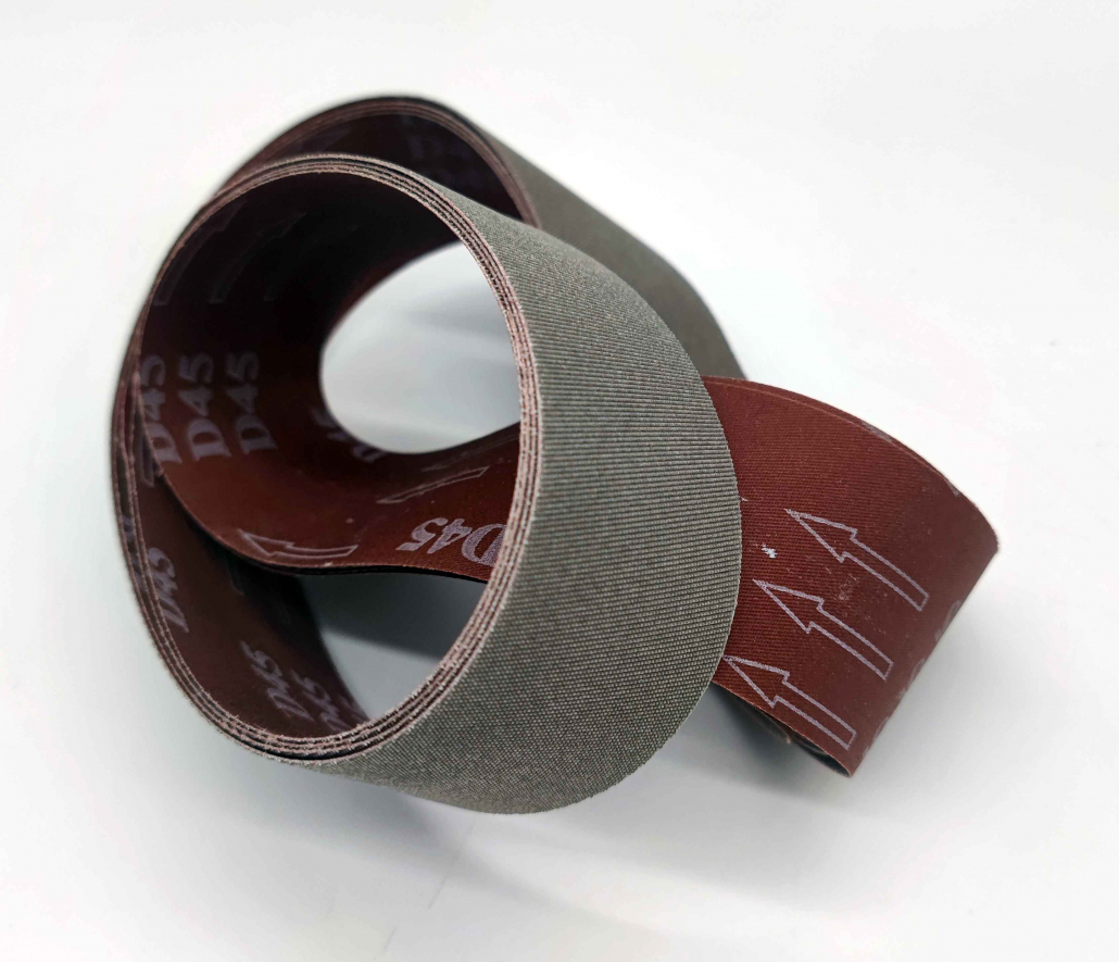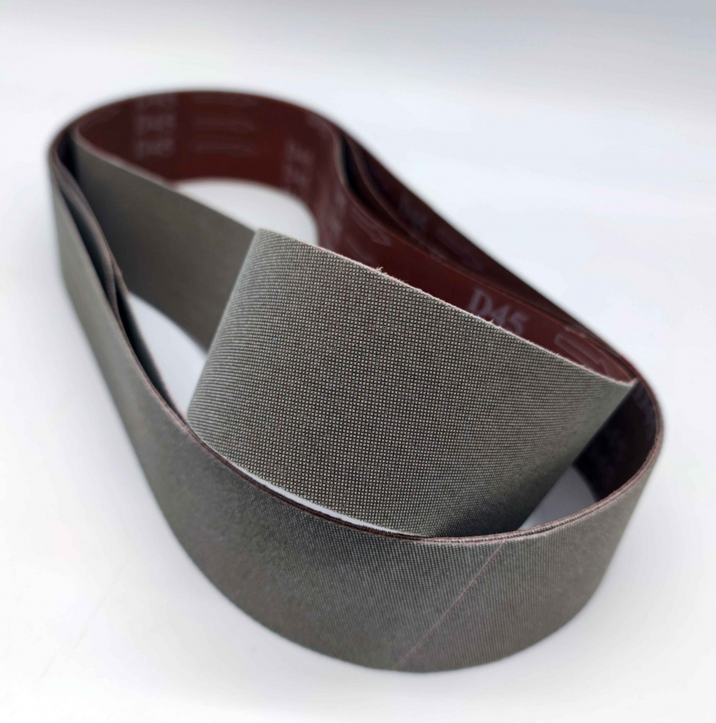 Hochleistungsschleifband mit Aluminiumoxidkorn als Mikroreplikation (Pyramidenstruktur) und Schleifhilfsmittel auf flexiblem JF-Gewebeträger für nahezu alle Metalle.